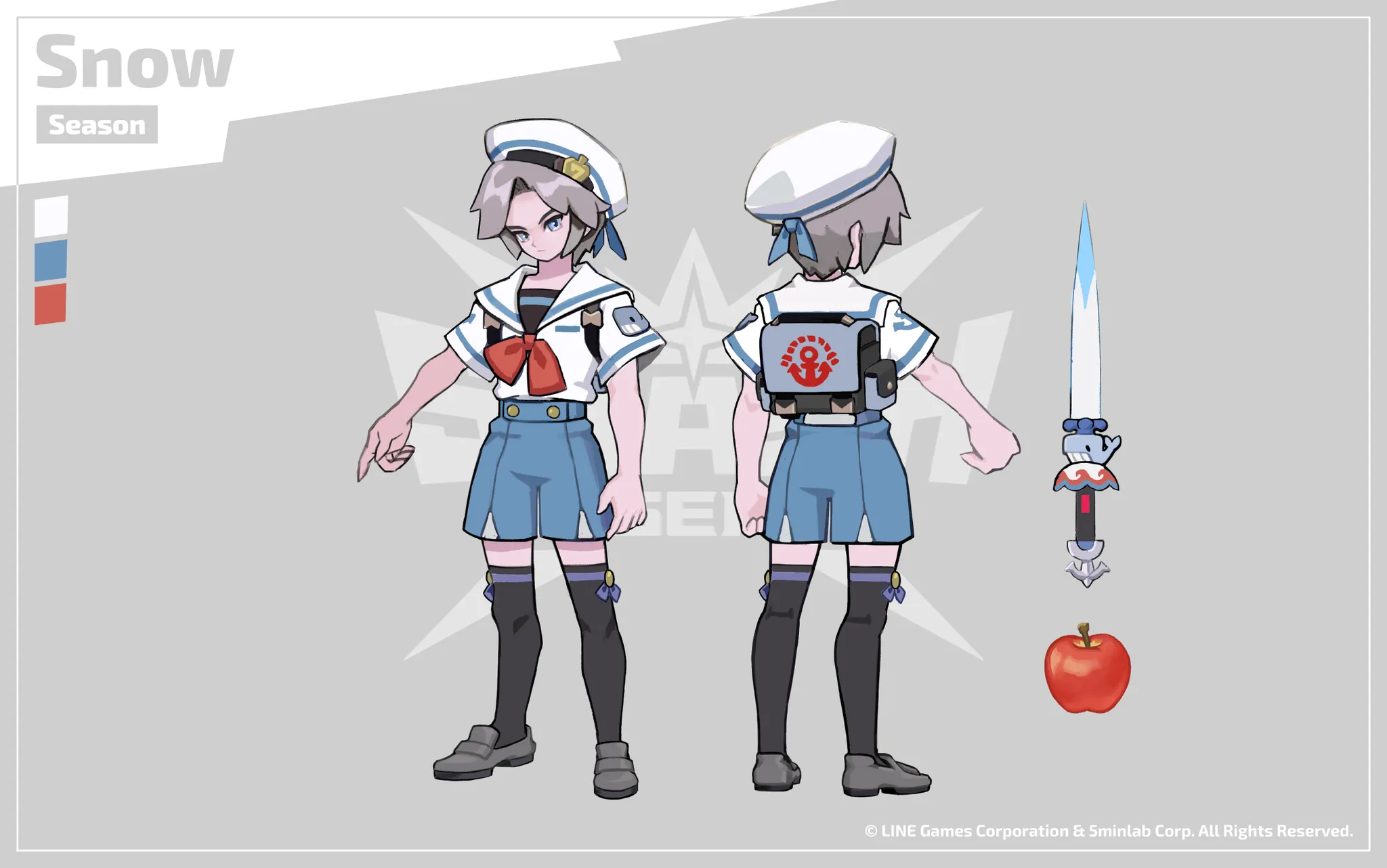 [떠나요 여름휴가!]를 기념하여 만들어진 특별한 복장. 바쁘고 지친 일상에서 벗어나 평소와 다른 모습으로 여름을 즐기는 레전드들의 모습. 물론 7D의 대표인 스노우 또한 운명과 싸움은 잠시 뒤로 하고 또래 소년의 모습으로 돌아가 여름을 만끽합니다!