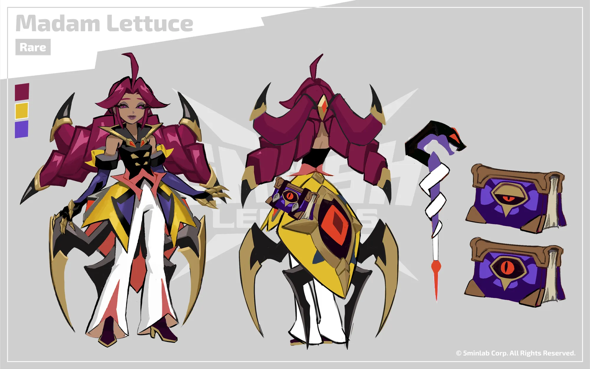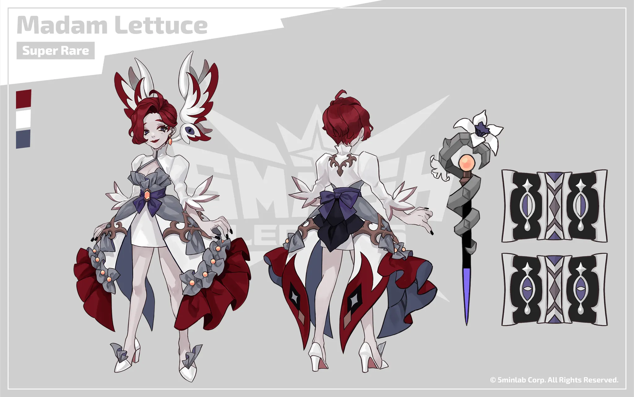 Madam Lettuce, the head of the Dark Moon Witches, secretly conducted various experiments on characters kidnapped by Umbra to satisfy her lust for knowledge of magic. From her research, she grew an ambition to peer into the “World Beyond Library World.” Not long after, she joined SMASH LEGENDS in hopes of furthering her ambitions.