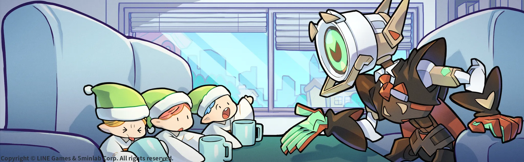 옹기종기 앉았다고 한 말은 빈말이 아니에요. 오늘 찾아오신 손님들은 요정 분들이니까요. 크기는, 어디보자, 성인 인간 남성이 손가락을 쭉 폈을 때, 그 손가락 끝에서 손바닥 끝까지의 거리쯤 될까요? 마치 작은 인형들 같군요. 뭐, 시놉 시티에서는 드문 일도 아니죠.